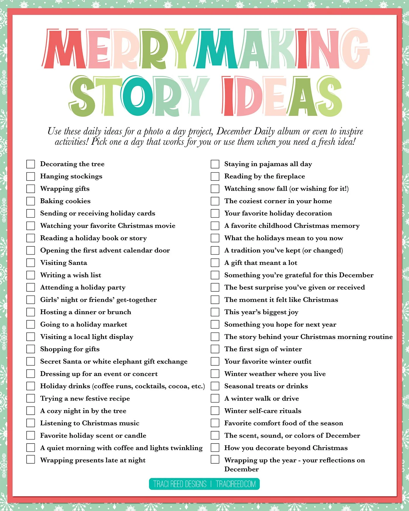 So grab your album, your favorite holiday collection, and your warm beverage of choice, and let this prompt list guide you through the month. Even if you only document a handful of days, you’ll still end up with a meaningful snapshot of your December.