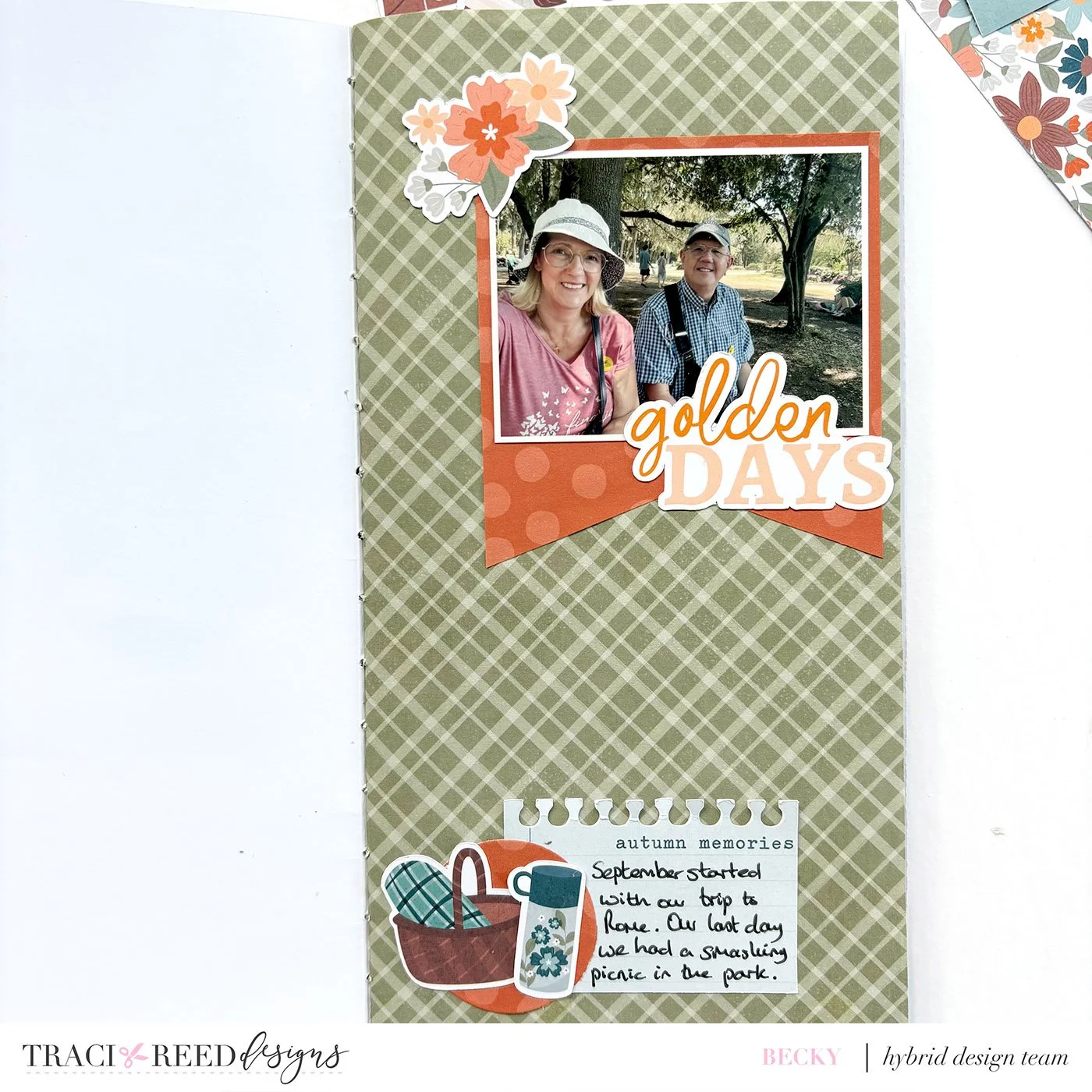 I love to make Traveller’s Notebooks to record a holiday or special event. As I have a lot of outings in September I decided to make a ‘September’ notebook using Amber Glow. Firstly I chose 4 patterned papers from the TN pack and printed 2 per A4 page, close together but with a very small gap between the two which will show where I need to fold the pages. I used copy paper for these inner pages.