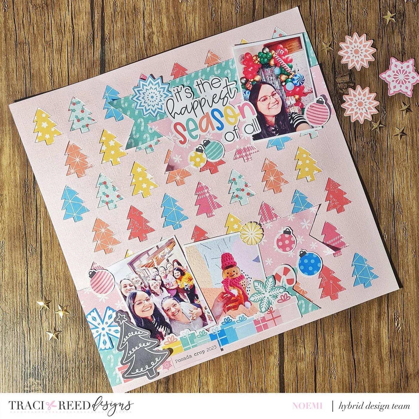 I LOVE this candy-colored layout from Noemi using All is Bright and Sketchy Sunday Sketch #57! The pink cardstock was such a great choice to pair with this collection and all the multicolored trees are just darling!