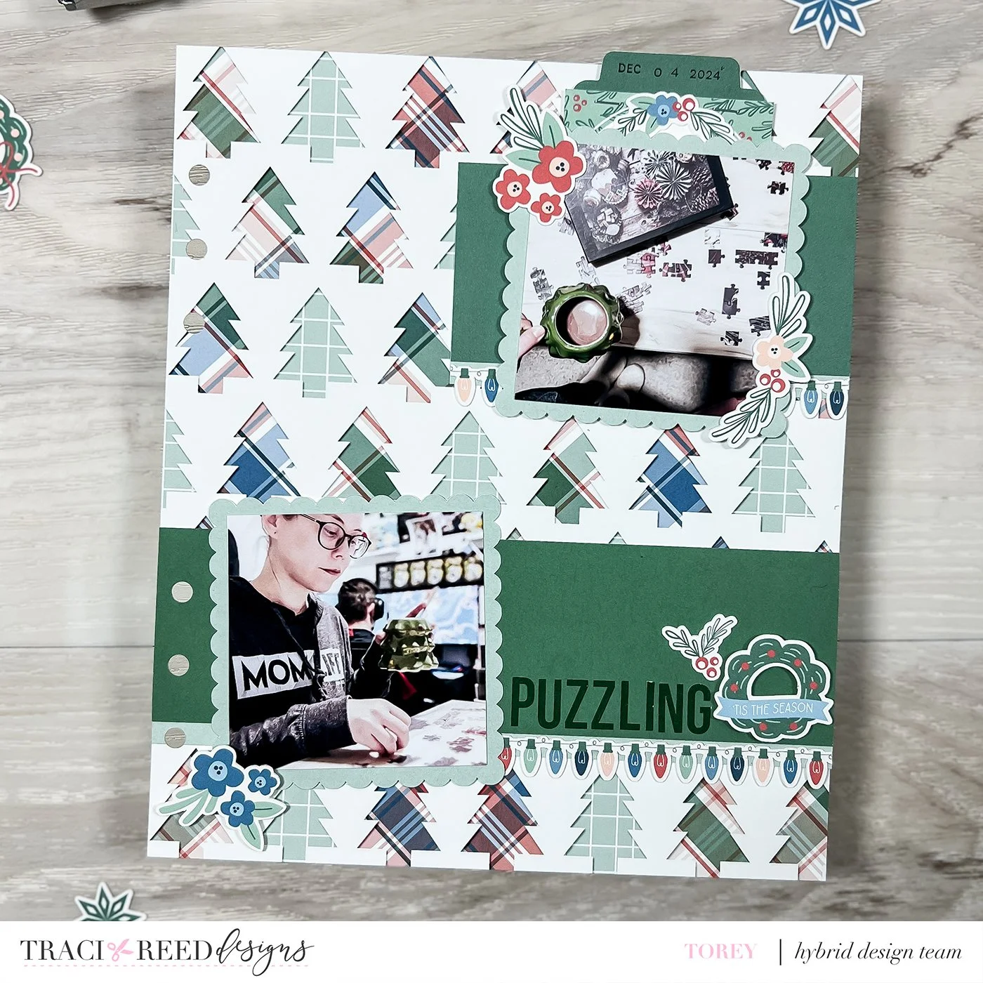 December Daily is one of my favorite projects every year. This year I am using lots of Traci’s past and present Collections to document my memories! Here I used last year’s Festive collection to document a work trip to Denver. I must say that there was not as many festive decorations in CO as I was hoping for….so American’s terminal in Chicago for the WIN! I love this view every year - no matter where I am going! A few fun embellishments and pattern paper really make my large photos extra “Festive”!!!