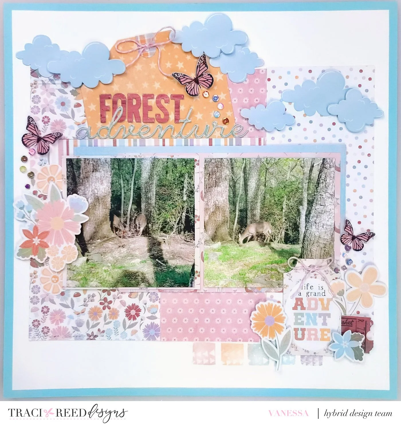 The Trailblazer collection is a great collection to document everything from everyday to outdoor photos. The colors are perfect for spring with lots of soft colors. For my layout I documented a walk in the forest where we found some deer grazing on the side of a hill. This collection paired perfectly with my photos. I love how it turned out.