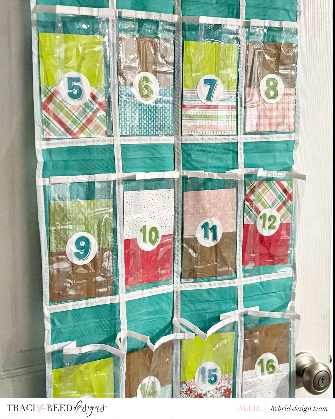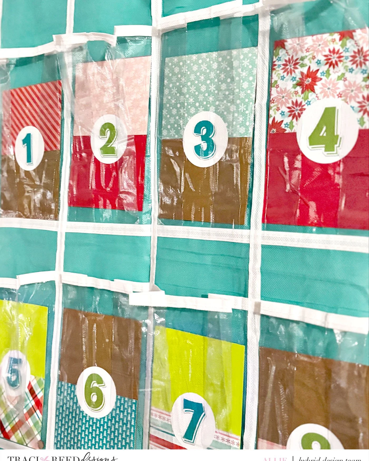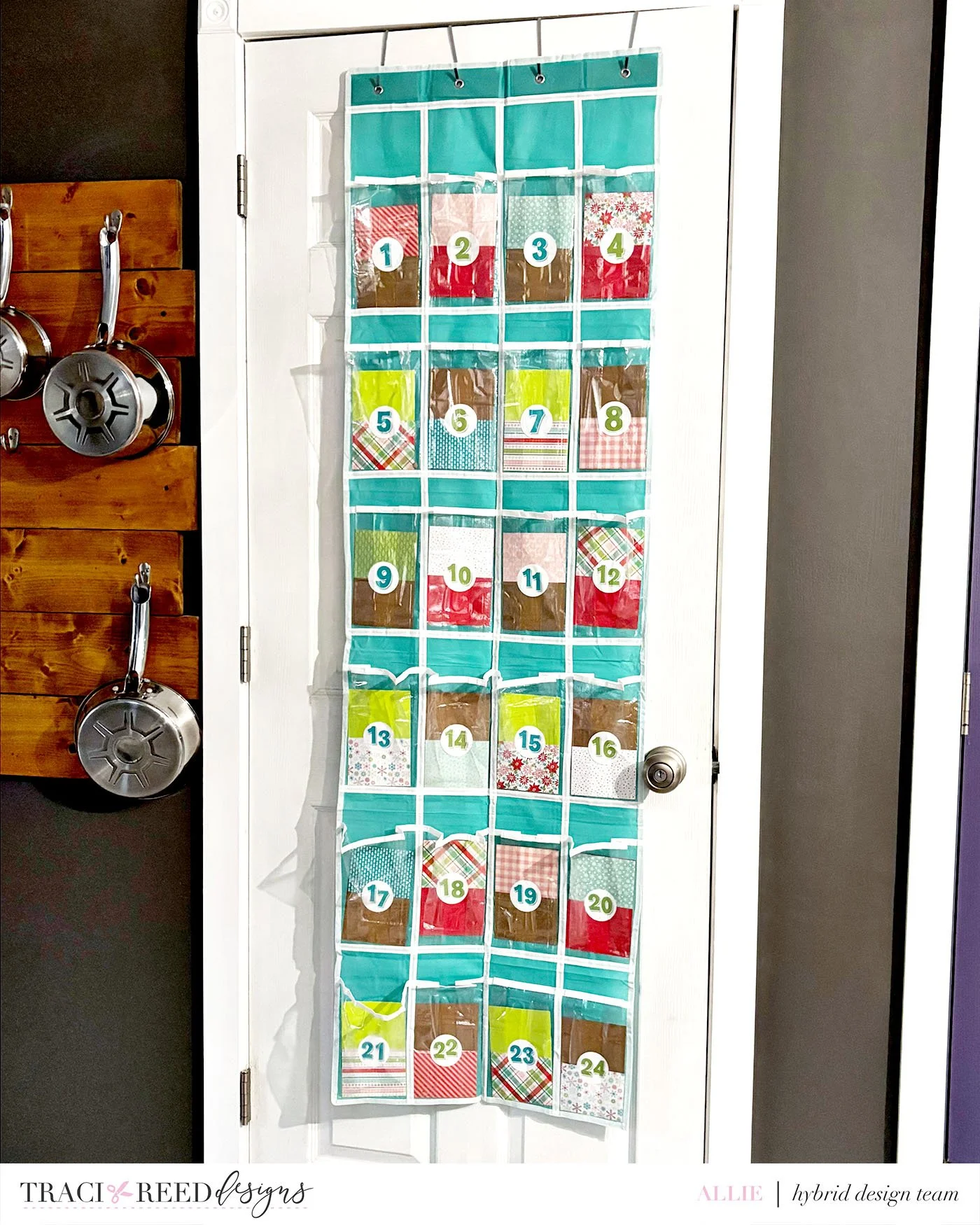 Hey friends, Allie from Allie Scraps here to show you a really fun way to do an EASY Advent calendar! I wanted a fun advent calendar this year that wasn’t just our beloved LEGO calendar (but we still got one of those, for sure!) I wanted this one to be fun AND decorative, and maybe something we could use year after year. The best part? This entire idea started with a simple over-the-door shoe organizer.