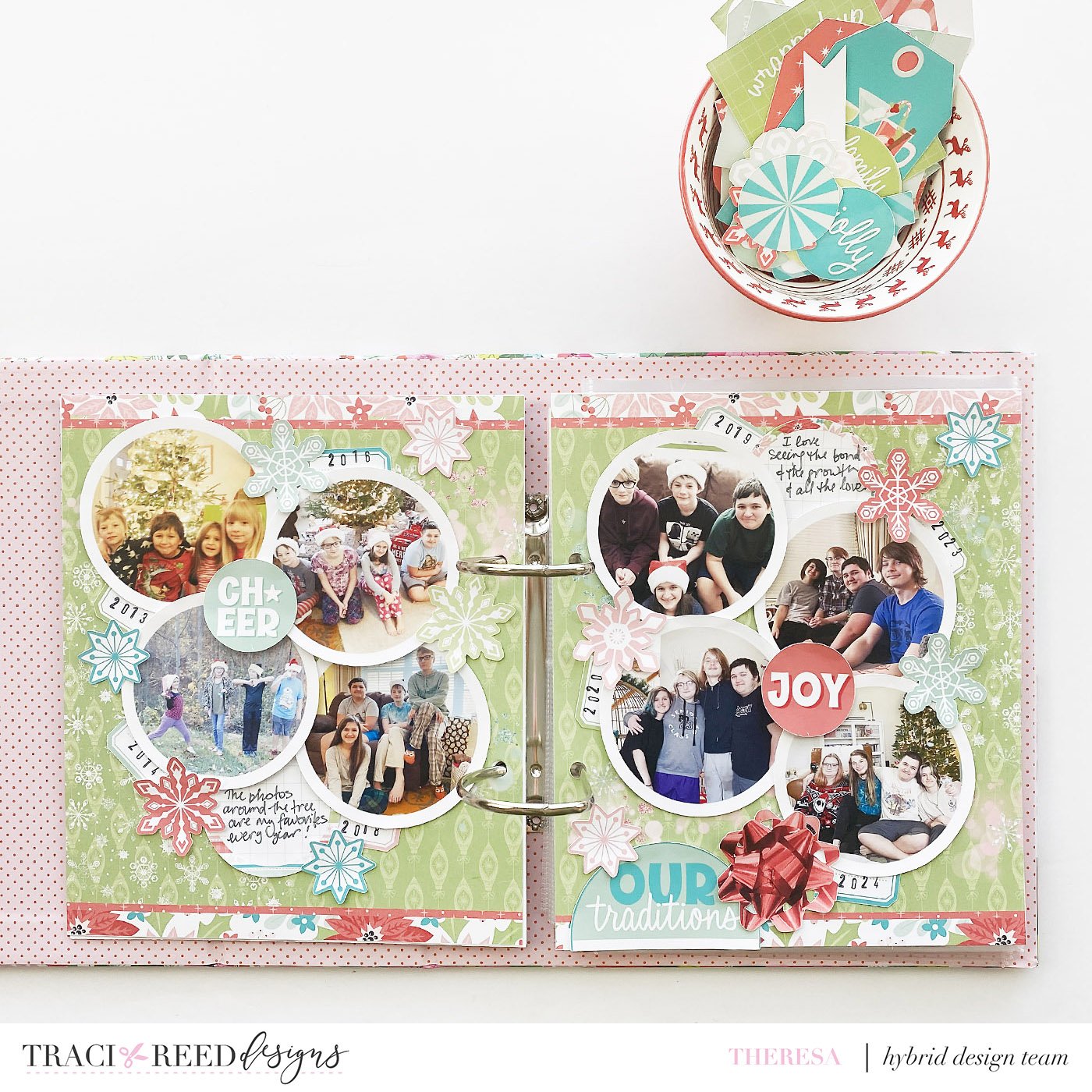 Hi friends, it’s Theresa here today with a cool layout idea for you documenting your family traditions throughout the holiday season. Traditions help us mark the passage of time and also keep us connected to the past, to past memories, people we know and loved, and places and things and activities that we look forward to every year.