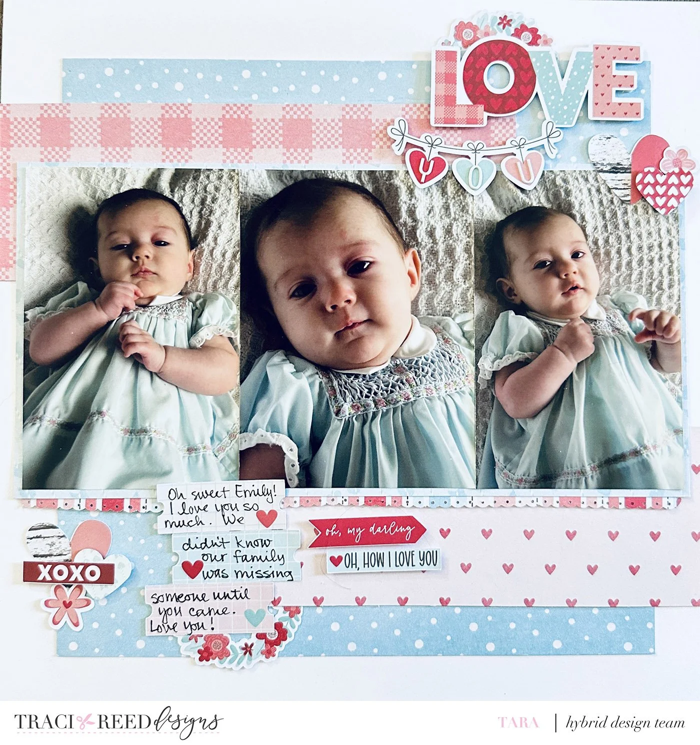 I created a baby layout using an older Valentine’s collection, Smitten: