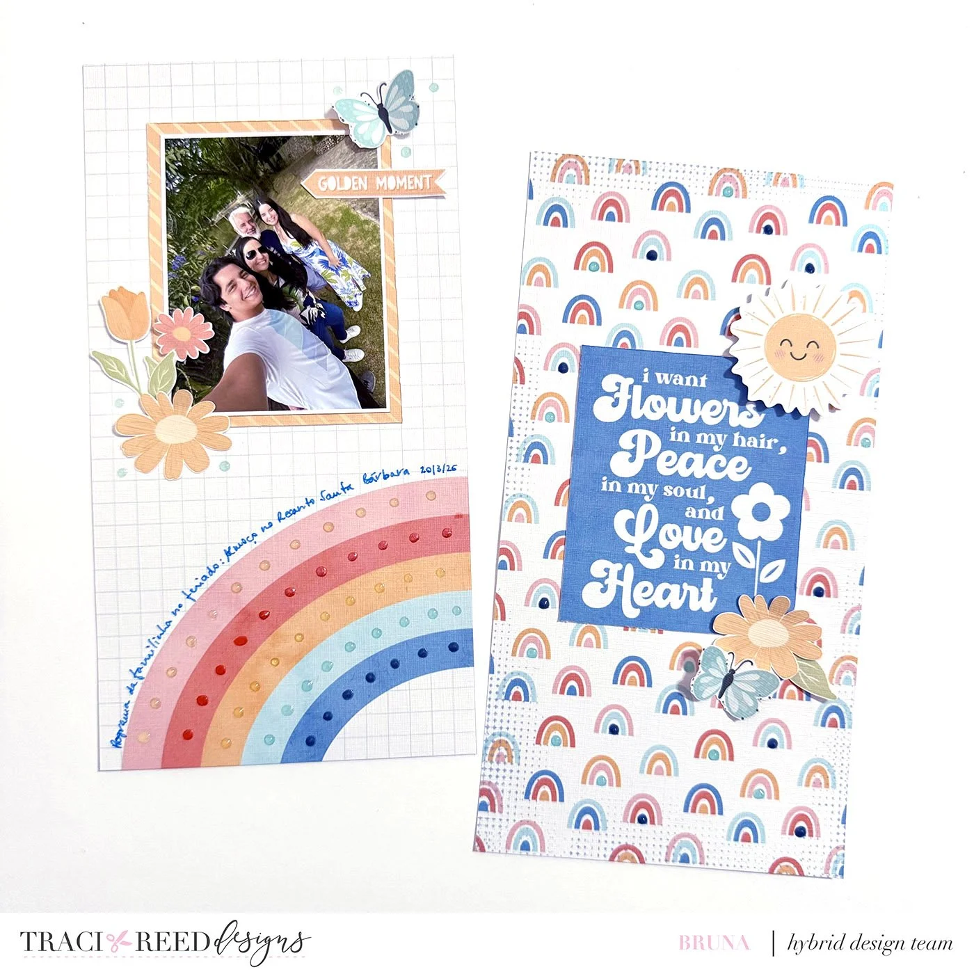 Today we’re matching up two bright and sunny collections: Brighter Days and Flower Child that have similar-but-different vibes and palettes for a fun and happy mix of the two to create beautiful pages and the team has, of course, outdone themselves again!