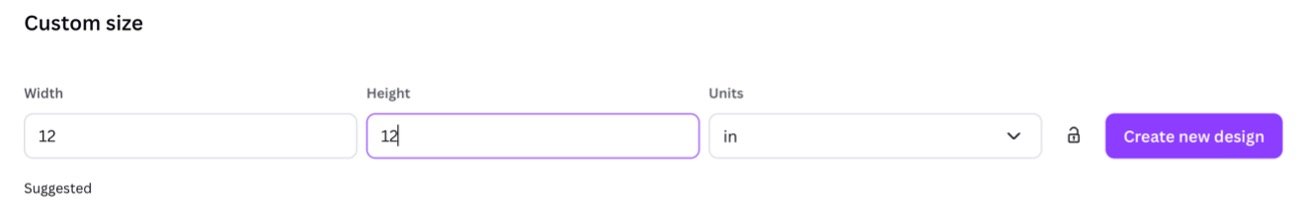 I do everything 12X12 even if I want it 6X6 or 8X8. I can either resize it, or print it smaller anyway. Change the units first to in or you will get a very small canvas.