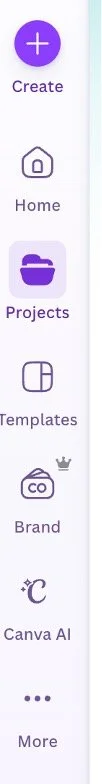 Step 1: Get your kit into Canva. On the left toolbar, click Projects.