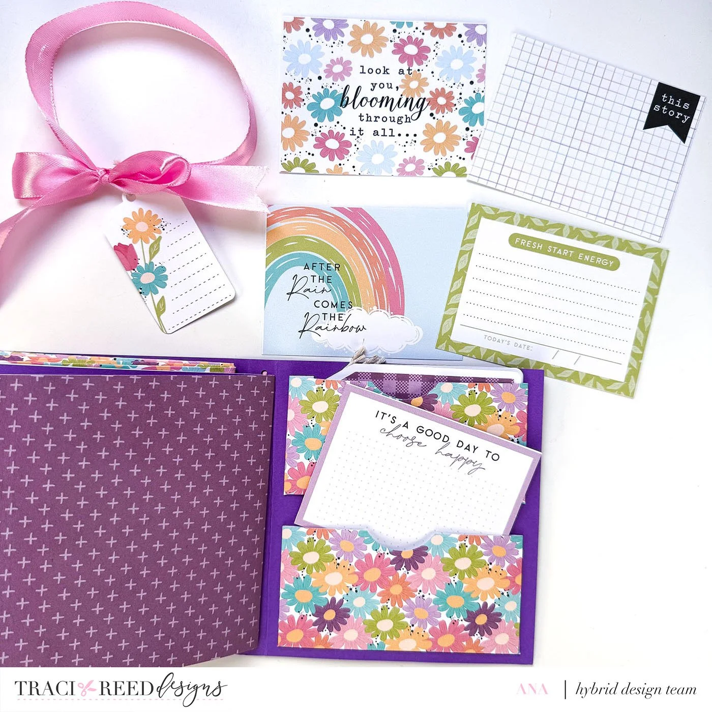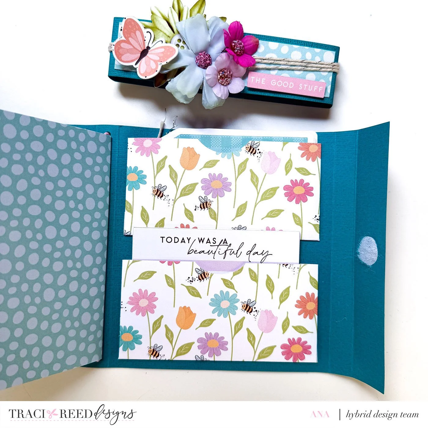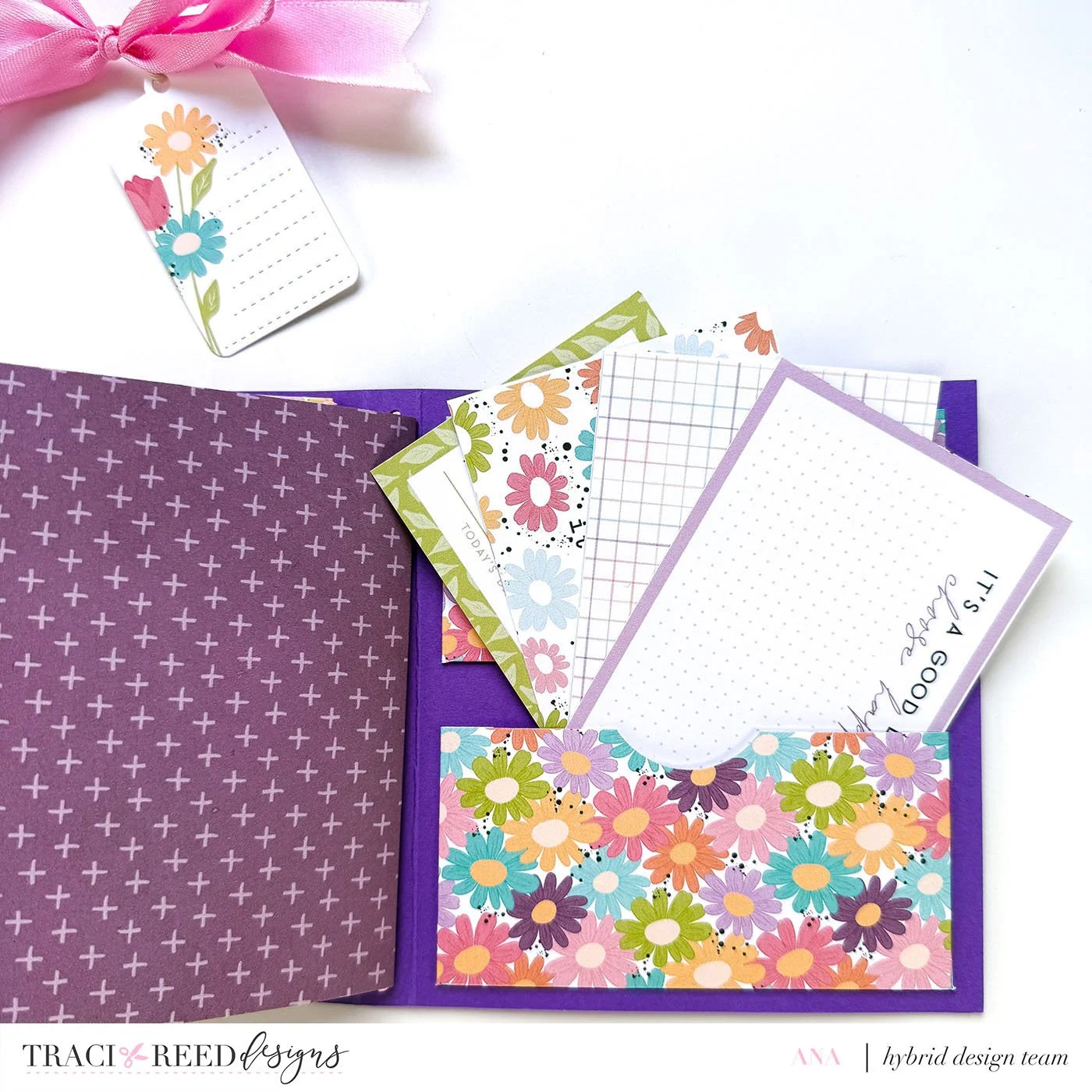This folio includes accordion pockets, extra pockets, and pages for journaling or photos - just everything you need in one cute little project!