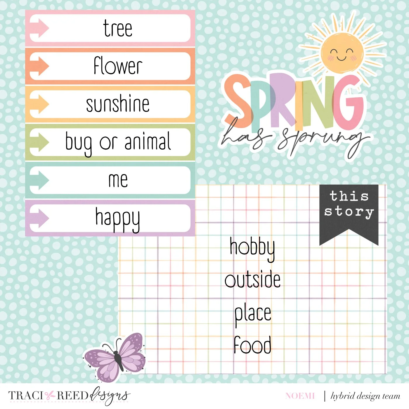 Hi! I’m so excited to share this project that was inspired by the arrival of spring. I used the Brighter days collection to match the feeling of the season: now that the days are filled with sunshine, it makes you want to go out for a walk. That’s how I came up with a spring challenge for myself, where I want to photograph and document the things I come across during my walks.