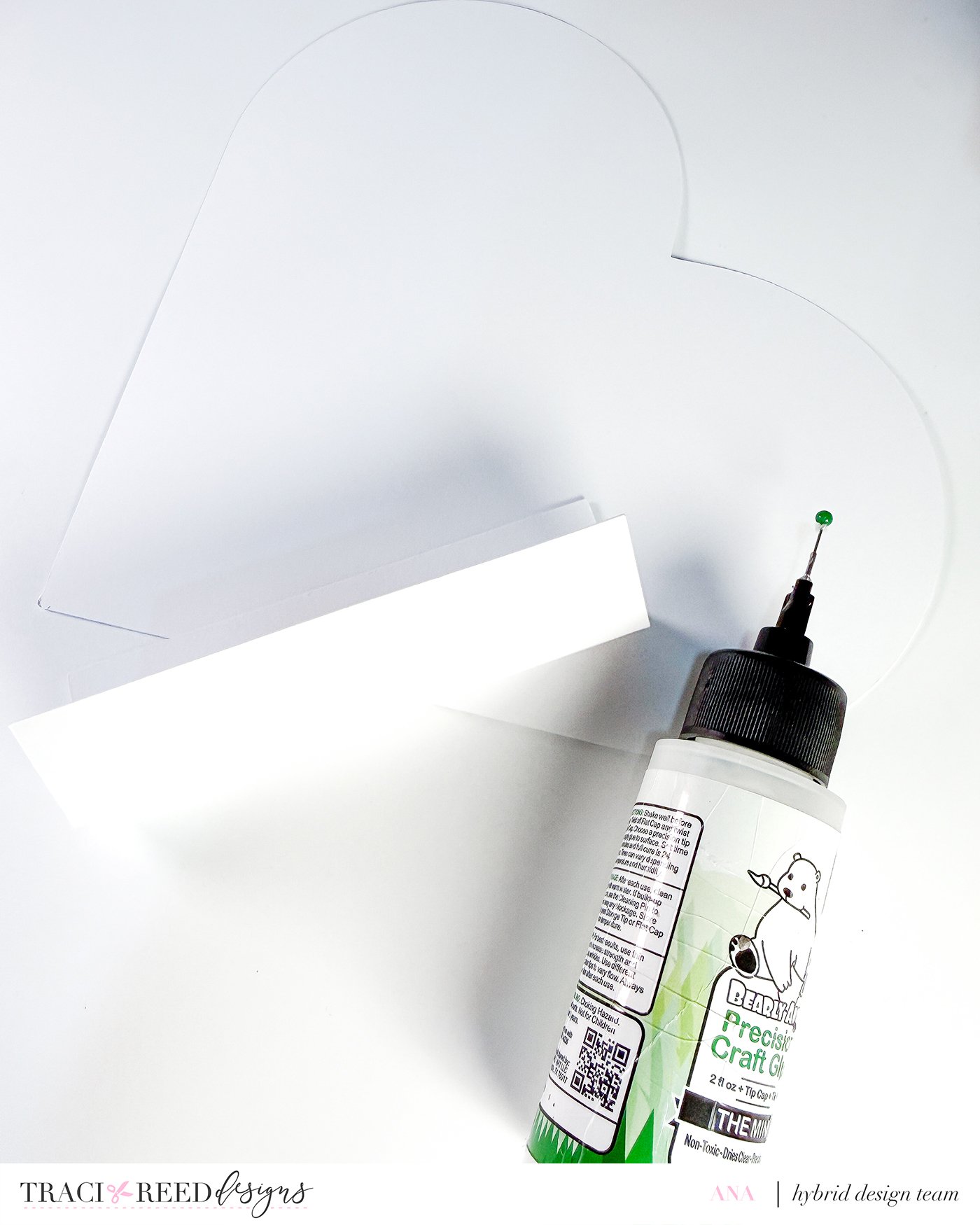 2. Glue the left side of a binding strip to the right edge of the heart. The opening should face left.