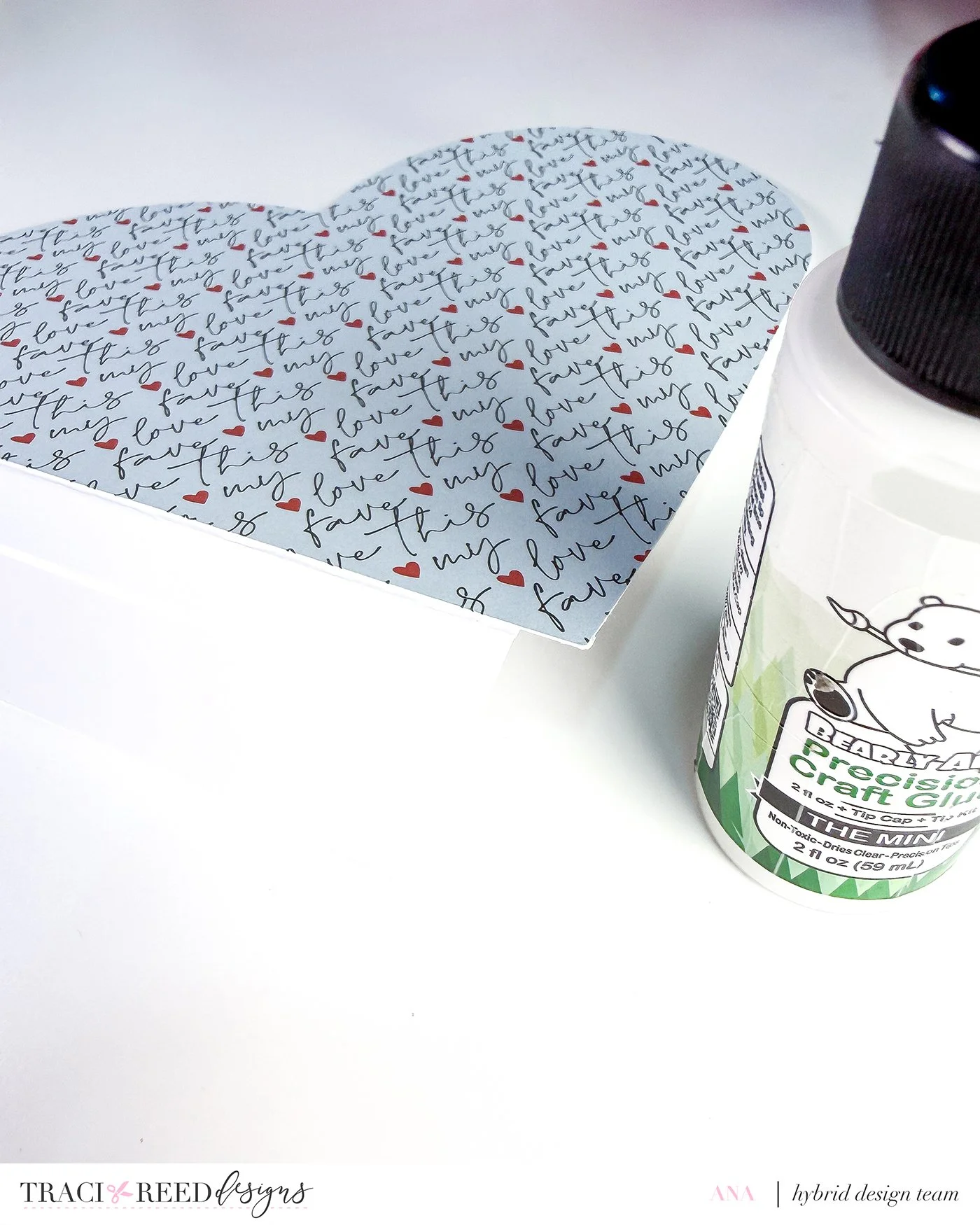 1 half heart cut from vellum (same size as the heart pages, cut vertically in half)