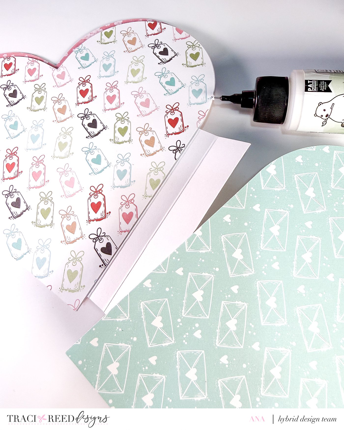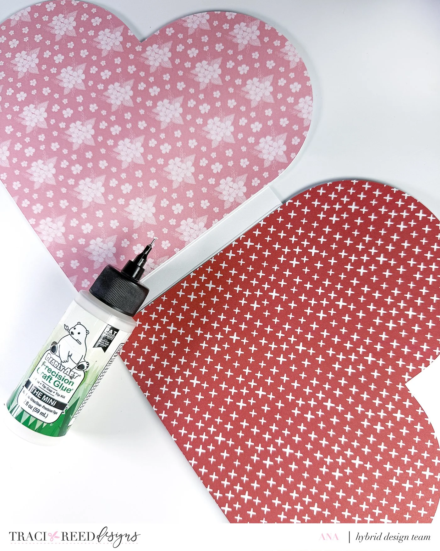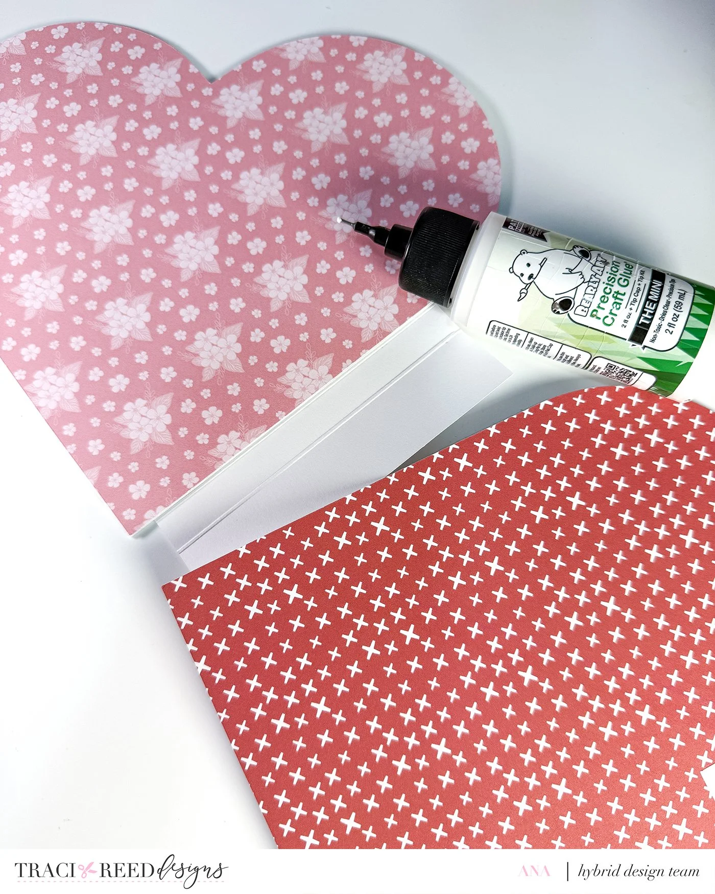 4. Glue the second page to the right side of the binding strip, making sure the hearts align when folded.