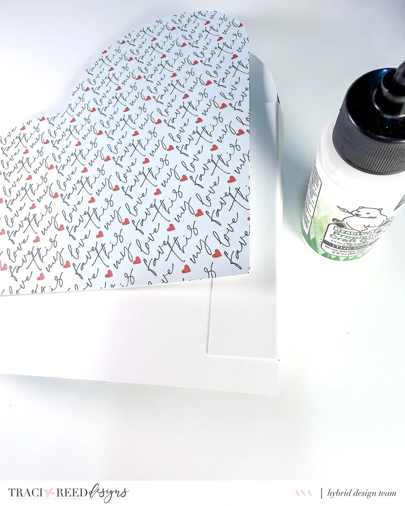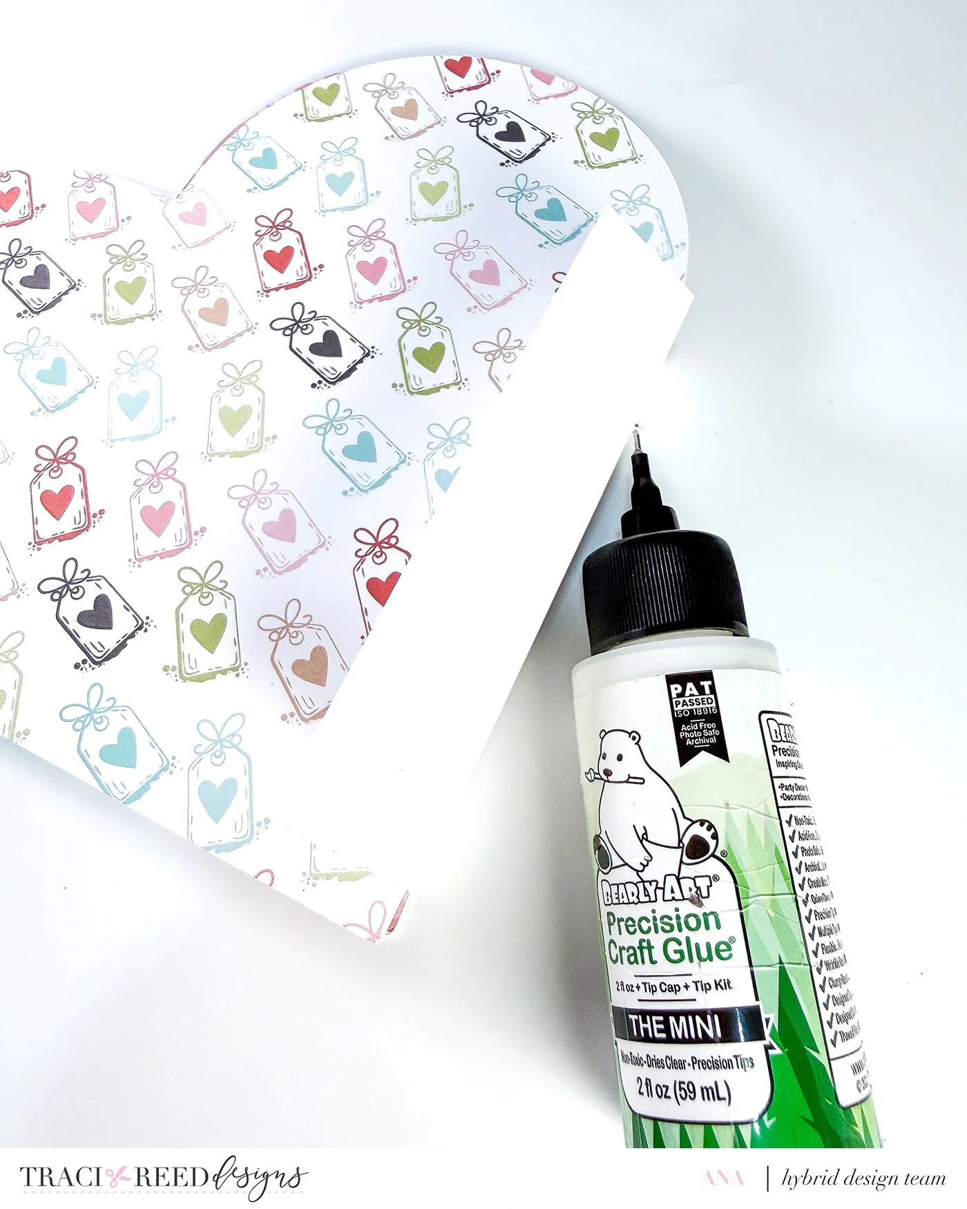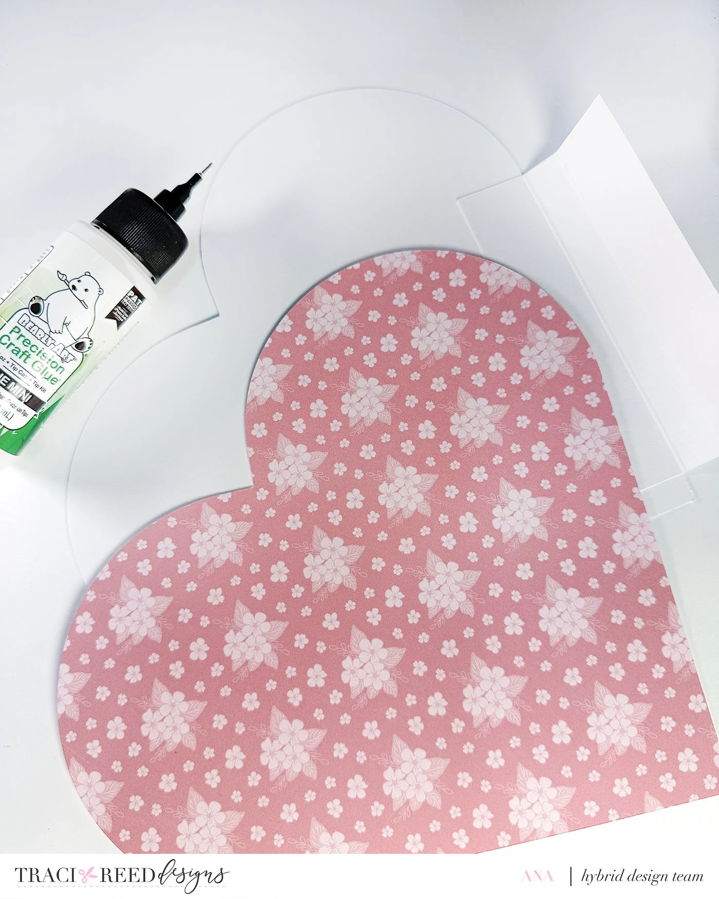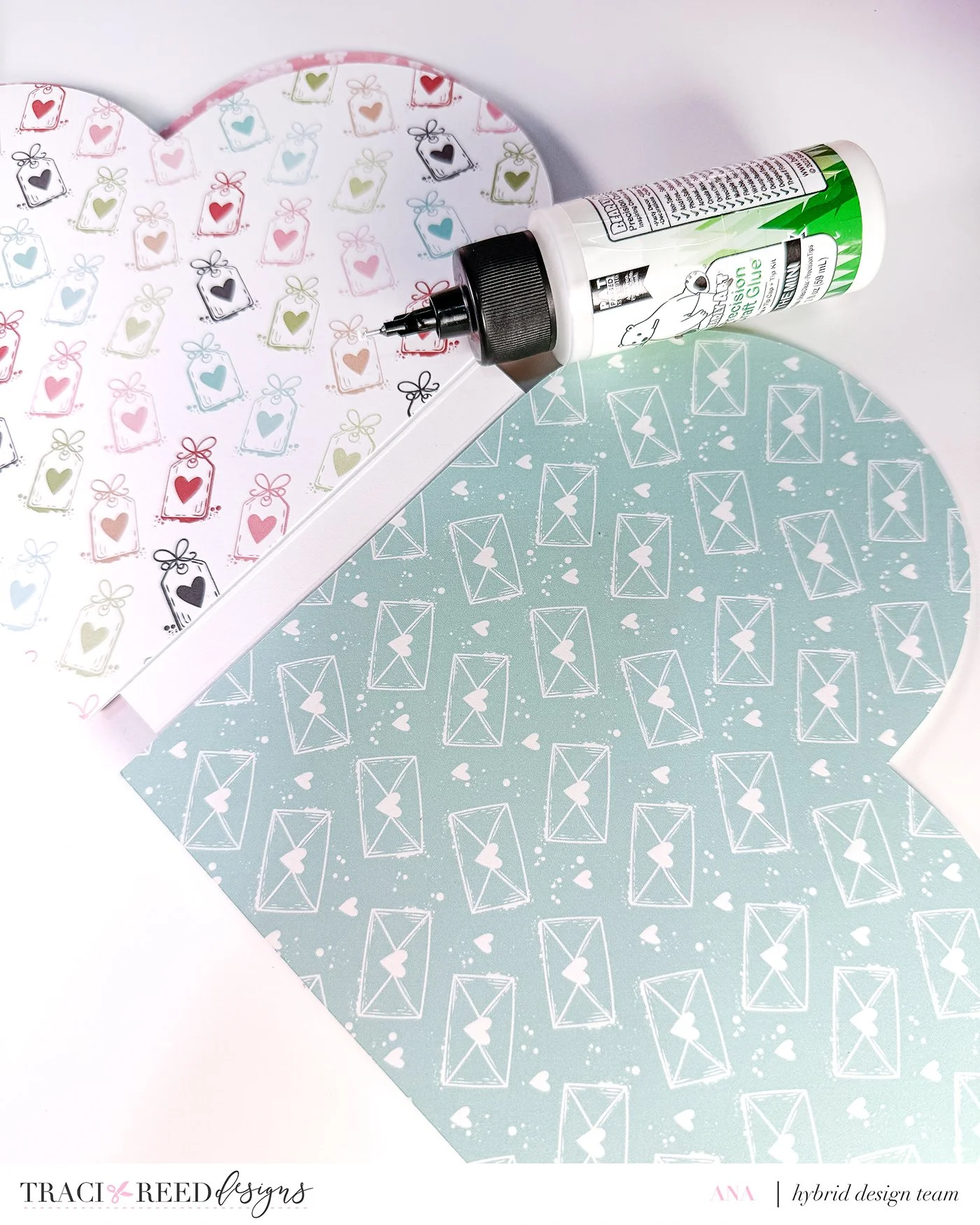 4. Glue the second page to the right side of the binding strip, making sure the hearts align when folded.