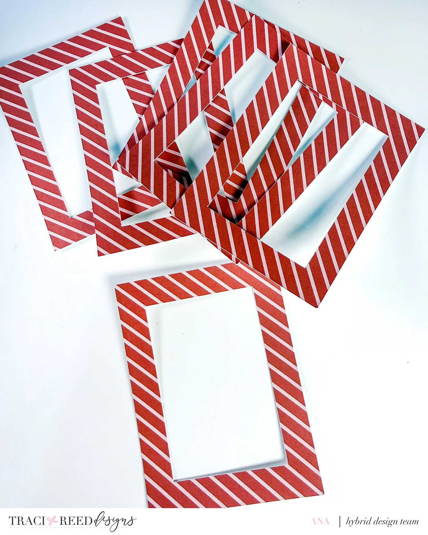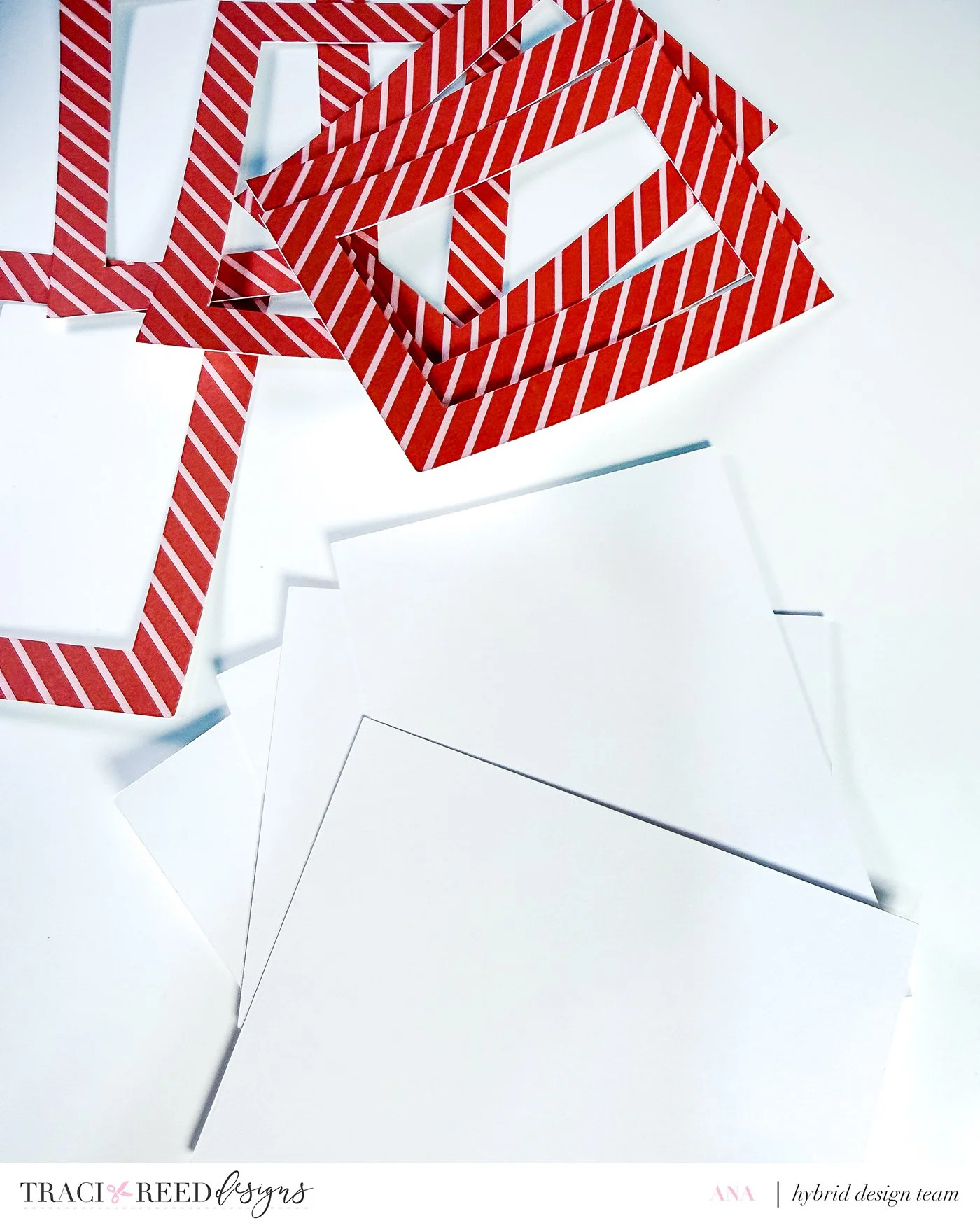6 frames measuring 3 x 4 inches with 0.5-inch borders (pattern paper)