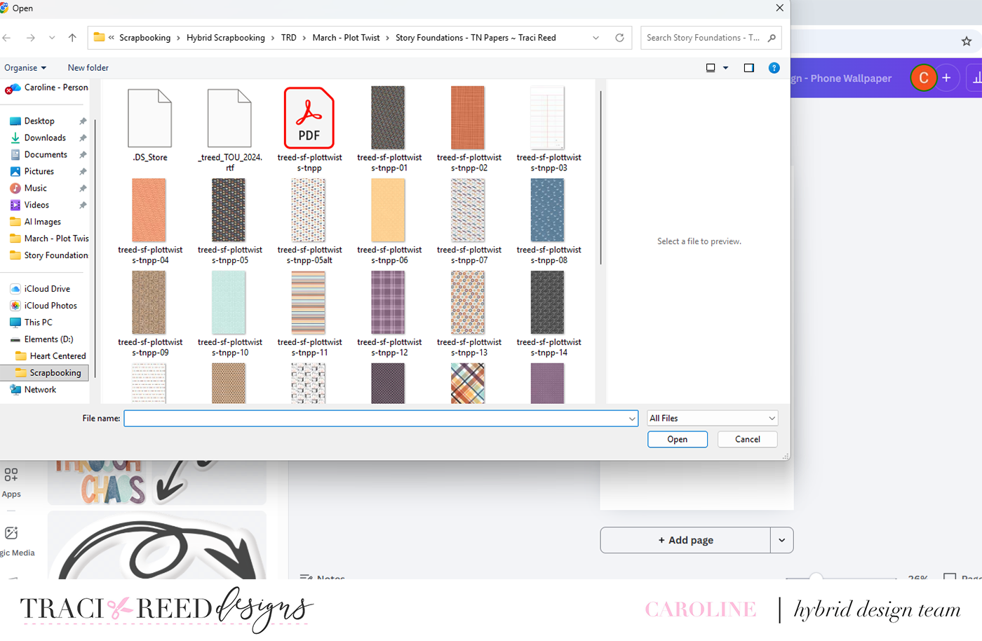 4. Create your background (I like to insert a Traveller’s Notebook paper across the whole canvas for my background)