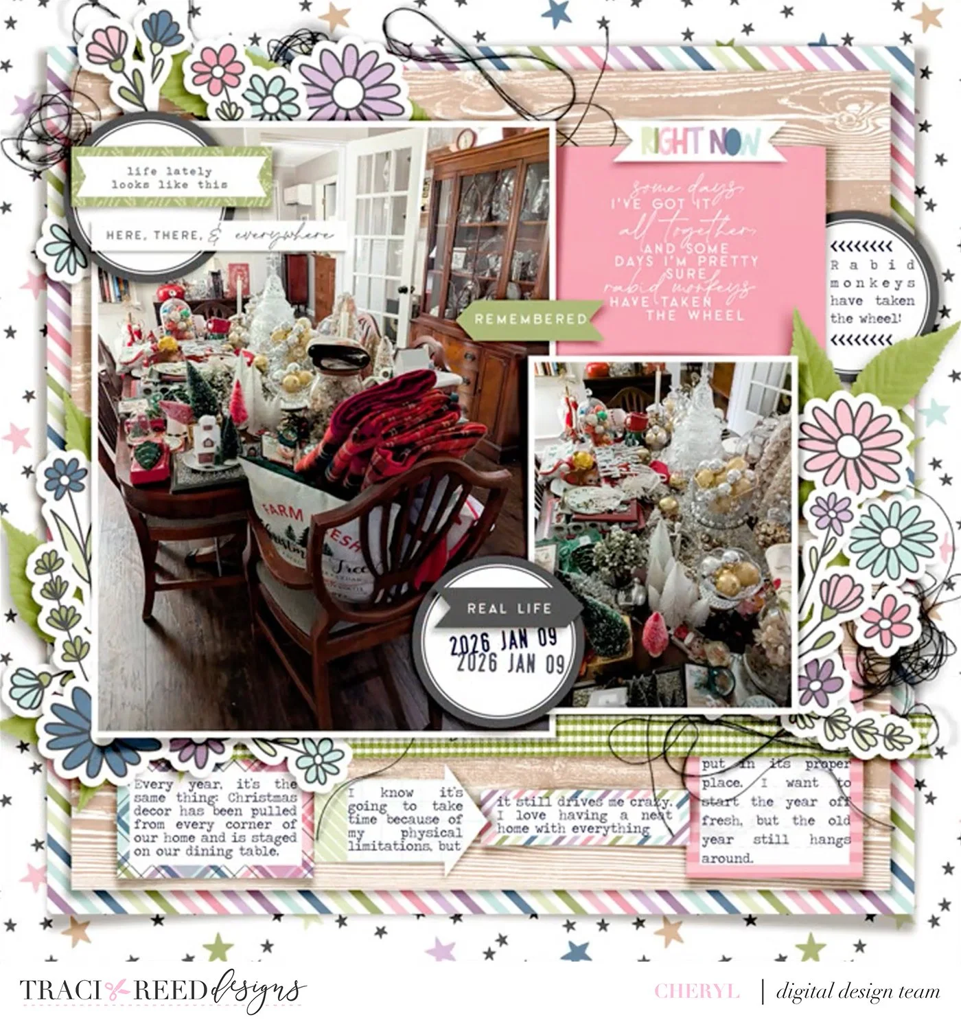 Theresa’s two pager has so many details in every pocket I keep finding new layers every time I look at it. One of my favorite things about pocket pages is making every pocket its own little layout and Theresa demonstrates that masterfully here!