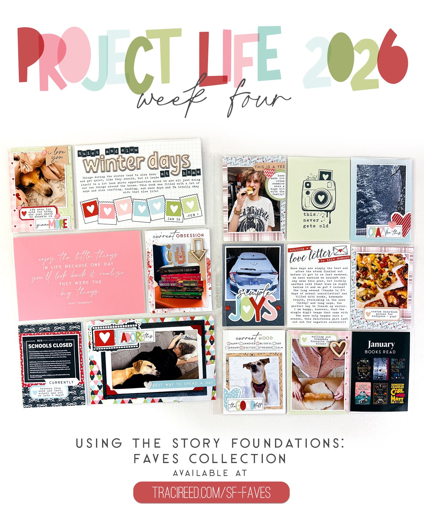 Instead of forcing a story that wasn’t there, I decided to lean into the reality of the week. Not every seven-day stretch is packed with big moments, and that is exactly why I love documenting this way. This layout became less about “events” and more about mood, routine, and small slices of life. The Story Foundations: Faves collection was the perfect fit because of its flexibility and strong visual elements.