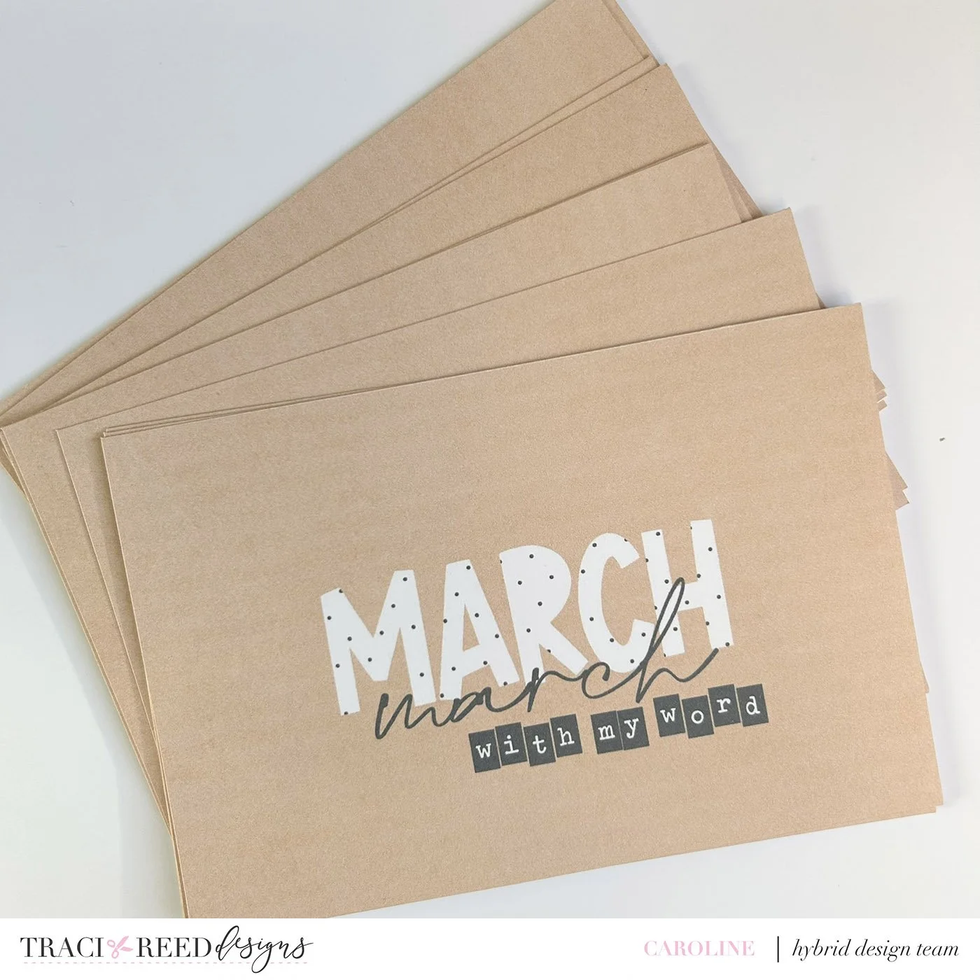 I then decided which variety of the 6x4 monthly cards I wanted to work with … I opted for the cute Kraft ones for a nice neutral divider each month. Before I printed them I opened them in Photoshop Elements and added the phrase “with my word” to each card with the Black typewriter font from the collection.