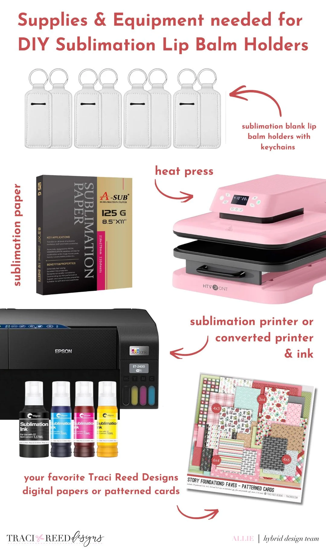Here’s an amazon collection with all of my favorite sublimation lip balm holder “supplies” but I’ll detail them out a little more below as well.