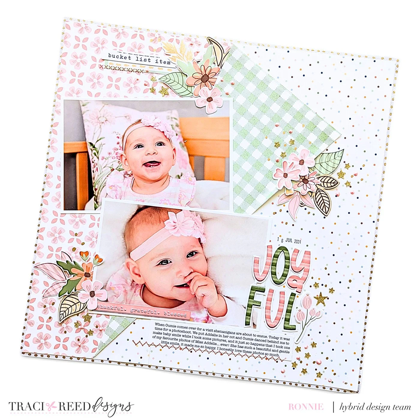 Happy Sketchy Sunday 54! When choosing which of Traci’s amazing collections to use to tell my story I just couldn’t go past the beautiful muted pinks and greens of Equinox. I really liked the softness of this whole collection. It was a bonus that I had this fun sketch to use as well. I added lots of little sprinkly bits to the layout because that is my style at the moment, but other than that I stuck very closely to the sketch.