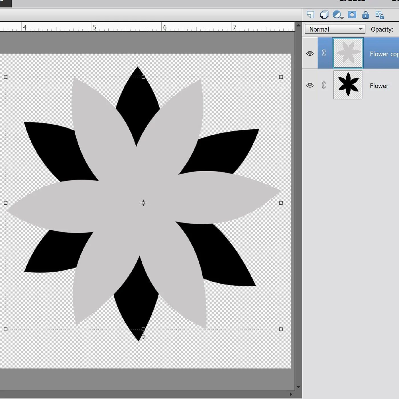 Then merged the layers to create one flower shape.