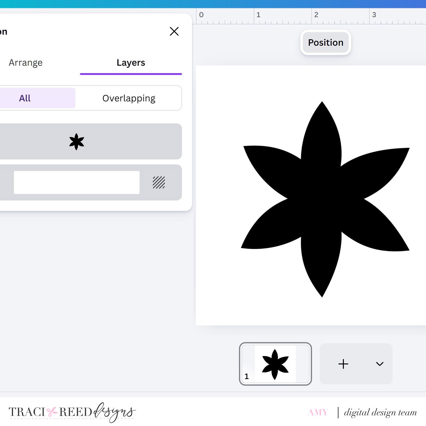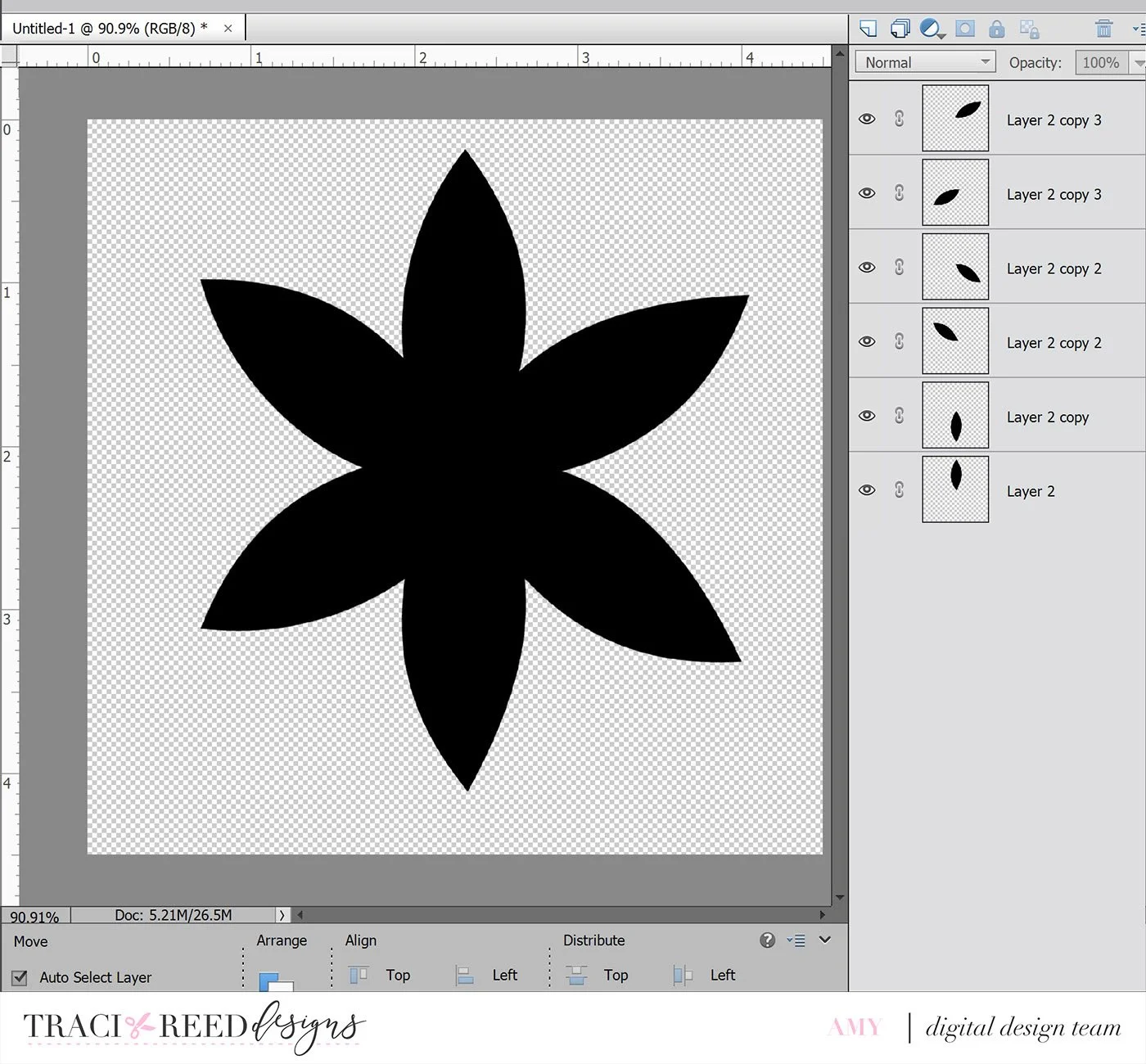 On a 4.5 x 4.5 size canvas, I duplicated the leaf 5 times to create a flower shape with 6 petals.