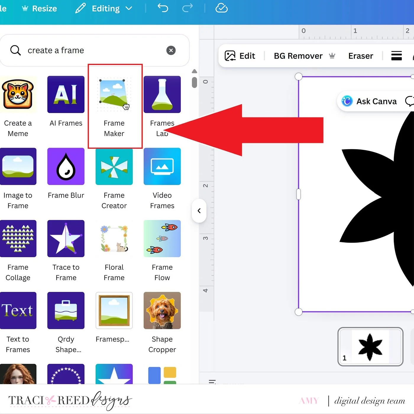 Use the ‘Frame Maker’ app within Canva to create a frame from your PNG.