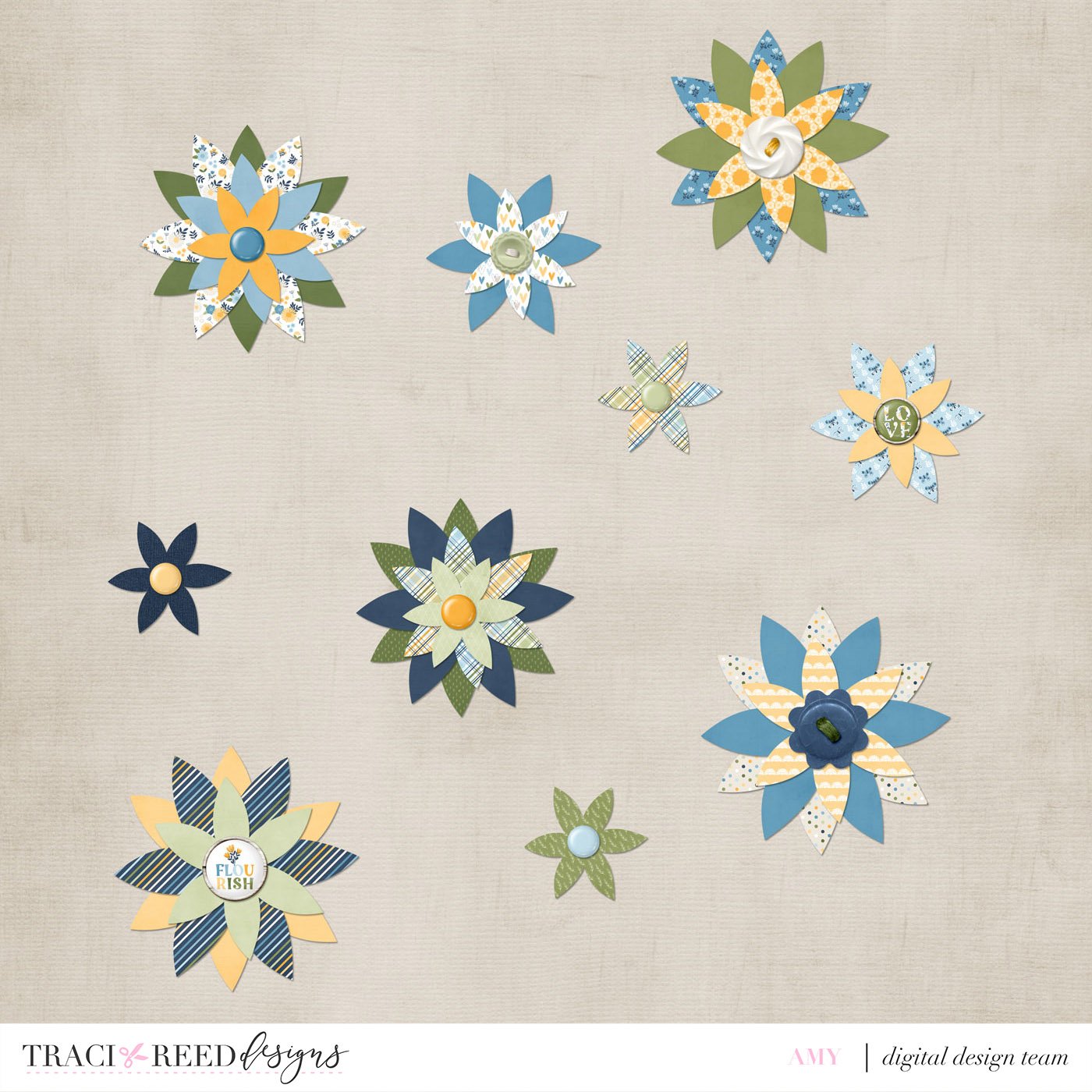 Add the next digital paper and so on until you like how your flower looks.